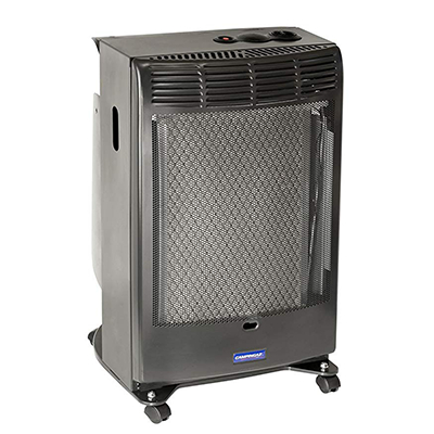 Unlike most gas heaters, this cabinet heater has no visible flame and uses catalytic technology to provide homogeneous and constant heat dispersion.