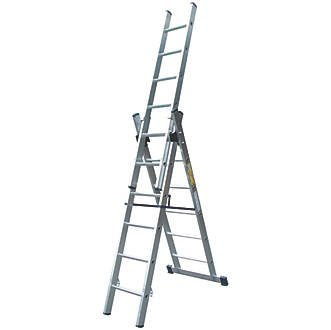 Professional multi-functional 3-section combination ladder suitable for regular use on site. This Ladder has large comfortable 'D' shaped rungs which provide excellent stability along with strong box section stiles. Solid side-arms provide excellent stability.