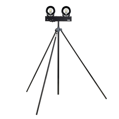 A double headed 30 Watt LED flood light. This flood light is a high quality and robust flood light ideal for lighting construction sites - warehouses - industrial areas as well as home renovations. The Lights are mounted on a swing leg tripod and has adjustable heights ranging from 1.5m-2.4m with a 160 degree pivot bracket. This light is 110v and will require a transformer or generator to power. Based on Elite LED30WSLTPDH LED Twin Head Swing Leg Tripod Flood Light Lumens: 5400 Wattage: 30W Light Spread: 120° Nightsearcher NSESpro350 LED Twin Head Swing Leg Tripod Flood Light Weight: 8kg Wattage: 30W Dimensions (l x w x d): 200 x 160 x 45mm Also known as a: Twin Head Floodlight - Double Head Flood Light and Twin Head Site Light.