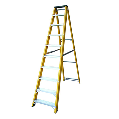 The 10 Tread Swing-back Fibreglass Step Ladder is none conductive and is safe to use when dealing with electrics. This step is Lightweight meaning it is easy to carry and manoeuvre. With increased strength and stability this Step Ladder is ideal for electricians and other tradesmen.