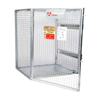 Folding gas compound or gas cage. Can be folded down to 1800mm in seconds without the need of removing any parts. This heavy duty fully galvanised design can sustain all weather conditions. This secure cage is designed to store up to 9 x 47kg gas bottles - tools or equipment. External dimensions (height x width x depth): 1800 · 1200 · 1200 mm Internal dimensions (height x width x depth): 1790 · 1190 · 1190 mm Weight: 120 kg Capacity: 2535 l Fire Resistant: No