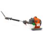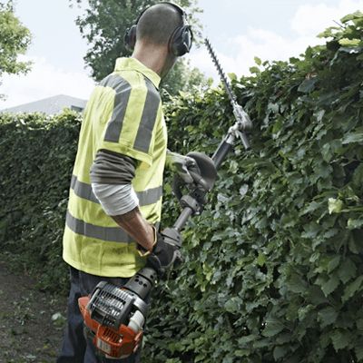 Long reach hedge trimmer also known as a Pole hedge trimmer can cut up to a height of 3 metres. This machine is supplied with PPE including face protection. Additional Information: A professional hedge trimmer with an adjustable cutter bar and extra-long pole - the engine serves as a counterweight to the cutting bar - making this Long Reach Hedge Trimmer exceptionally comfortable and easy to use when cutting taller hedges. With the extra-long handles added with the easily adjustable head you will be able to reach and perfectly finish the tops of your hedges. Basic Working Techniques: Wear clothes made of a strong fabric and avoid loose clothing that can catch on twigs and branches. Inspect the working area and remove any objects that could be thrown out. Always ensure you have a safe and stable working position. Always use both hands to hold the machine and hold the machine at the side of your body. When trimming a hedge - the engine should always face away from the hedge. Work with a swinging action from the bottom upwards when trimming sides. Make sure that the tip does not touch the ground. Never work from a ladder - stool or any other raised position that is not fully secured. This machine is only designed for cutting branches and twigs and is the safest way to reach and trim tall hedges and bushes. Based On: Husqvarna 327HE4x Long Reach Hedge Trimmer Power Output: 0.9kW Maximum Power Speed: 8400rpm Fuel Tank Volume: 0.5l Idling Speed: 2700rpm Knife Length: 55cm Teeth Opening: 29mm Knife Adjustment Range - Up/Down Down: 85 ° Knife Adjustment Range - Up/Down Up: 90 ° Recommended Maximum Twig Diameter: 20mm Cutting Speed: 4184 cut/min Sound Pressure Level At Operators Ear: 92dB(A) Sound Power Level - Guaranteed (LWA): 106dB(A) Equivalent Vibration Level (ahv - eq) Front Handle: 4m/s² Equivalent Vibration Level (ahv - eq) Rear Handle: 5m/s² Weight: 6.6kg