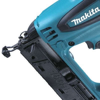 2nd fix nail gun for hire. A gas driven cordless brad nailer designed to use 16 gauge nails between the lengths of 15mm and 64mm. Supplied complete with 240V Battery Charger - Battery and Carry Case Additional Information: The main features include a tool-less nail jam clearing - a misfire inhibitor for smaller length nails and a twin set of LED lights used to illuminate the work area and to indicate low battery power. The nailer also has soft ergonomic grips for high degrees of handling and manoeuvrability - on top of this the nailer's nose is soft-tipped to prevent damage to the work area. Other features include an adjustable depth - a dual position hanging hook to aid in simple storage of the nailer and a magazine window to easily view the remaining capacity. Based On: MAKITA GF600SE 7.2V BRAD NAILER - 2ND FIX NAIL GUN Battery Type: Li-ion Battery Ah: 1.0 Charging Time: 30 min Work amount on a single battery charge: 4 -000 shots Work amount per fuel cell: 1 -000 shots Magazine Capacity: 100 Vibration K Factor: 1.5m/sec² Vibration no Load: 3.5m/sec² Weight: 2.2kg. Please remember to order nails and gas at point of order. Examples of 2nd fix includes Fixing architrave Window boards - Floorboards - Skirting boards - Fitting internal doors Handrails Fixtures and fittings Connection of electrical equipment Radiators