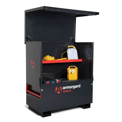 Large Tool Vault Hire Also known as a Site Safe or Site Box. The Large tool vault is perfect for storing tools - materials and equipment on site. The vault allows equipment to be left over night on site giving peace of mind that the equipment is safe. The vault has a 5-lever dead lock and is made with 2mm and 3mm steel. The vault is also fire resistant making it ideal for on site storage. Based On: Armorgard TuffBank TBC4 Large Tool Vault External Dimensions (including protrusions): W x D x H: 1275 x 675 x 1270mm Internal Dimensions: W x D x H: 1186 x 605 x 1185mm Weight: 159kg Finished Coating: Powder Coat with Anti-Corrosive Undercoat Newton Loading of Gas Arms: 1000N