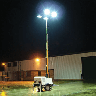 Ideal for industrial and commercial applications. This light provides up to 4 times the lighting capabilities in comparison to traditional tungsten bulbs and can light up to 100m. The lighting mast can extend up to 9m - has a fully bunded fuel tank and has an integral 9kva generator giving 3KVA of power when the lights are in operation. Suitable for events - construction - car parks etc. Also known as a Tower light.